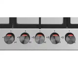 Model posiada pięć palników: potężny palnik WOK o mocy 3,5 kW (potrójny płomień), duży palnik o mocy 3 kW, dwa średnie o mocy 1,75 kW oraz mały o mocy 1 kW, co umożliwia elastyczne gotowanie na różnych garnkach. Płyta wyposażona jest w elektryczny zapalacz w pokrętle, uruchamiany przez naciśnięcie i przekręcenie, oraz zabezpieczenie przeciwwypływowe gazu, które natychmiast odcina dopływ gazu w przypadku zgaśnięcia płomienia.