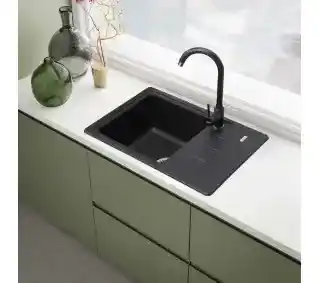 , Franke BSG 611 62 Onyx z baterią Pola Onyx to elegancki zestaw kuchenny wykonany z trwałego fragranitu. Zlewozmywak posiada jedną komorę (340x355x200 mm) i odwr... rozwiń