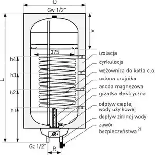 Wymiennik c.w.u. 100 L z wężownicą spiralną, wiszący - LEWY Neptun Kombi Wężownica dedykowana do zasilania z wszystkich typów kotła c.o. Przyłącza wężownicy z prawej lub lewej strony. Do 50% dłuższa ż...