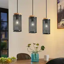 Lindby Kiriya 3 Lampa Wisząca Black/Wood 9627981