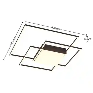 Czarna lampa sufitowa LED Nelinka natychmiast przyciąga wzrok swoim uderzającym graficznym designem składającym się z czystych linii i kątów prostych. Kwadratowe i prostokątne kształty lampy tworzą za...