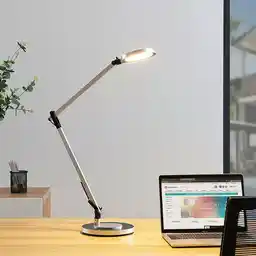 Lampa biurkowa LED Rilana Lindby, możliwość ściemniania, aluminiowy / szary / cynkowy, biuro, metal, nowoczesny