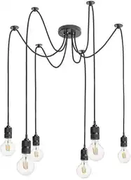 Lampa wisząca z centralną rozetą sufitową i sześcioma pojedyńczymi kablami z oprawkami E27. Kable są wyposażone w sufitowe uchwyty, które można umieścić w dowolnej odległości od rozety. Długość kabla ...