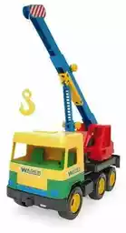 , Middle Truck Dźwig firmy Wader to kolorowy pojazd budowlany dla dzieci powyżej 3 lat. Posiada ruchomy wysięgnik i opuszczany hak, co pozwala na realistyczną zab... rozwiń