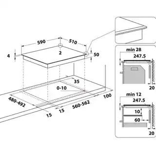 Położenie urządzenia: Wbudowany Liczba palników/stref gotowania: 4 stref(y) Rozmiar szerokości płyty: 59 cm Typ górnej powierzchni: Szkło ceramiczne Kolor pr...