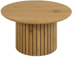 Stolik kawowy okrągły Yale marki Actona to designerki mebel o niebanalnym wyglądzie w kolorze dzikiego dębu. Yale posiada drewniany blat, a jego podstawa ozdobiona jest pięknymi lamelami w stylu skand...