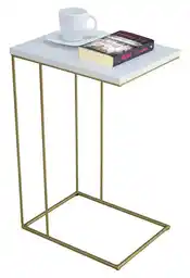 Stolik ma średnicę 50 cm, co czyni go kompaktowym i łatwym do ustawienia w różnych wnętrzach. Wysokość stolika umożliwia wygodne użytkowanie, zapewniając przestrzeń na filiżankę z kawą czy drobne przedmioty. Dodatkowo stolik wyposażony jest w półkę, która zwiększa jego funkcjonalność, pozwalając na przechowywanie książek, czasopism lub drobnych przedmiotów. Dzięki metalowej konstrukcji mebel jest lekki, a jednocześnie solidny, co czyni go mobilnym i łatwym w przenoszeniu.