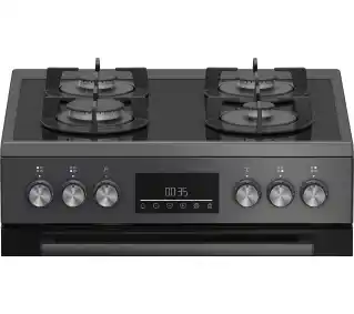 Panel sterowania z dużymi, czytelnymi pokrętłami i wyświetlaczem umożliwia szybkie ustawienie parametrów pieczenia. Wnętrze piekarnika pokryte jest łatwoczyszczącą emalią, która ułatwia usuwanie zabrudzeń po pieczeniu. Oświetlenie wewnętrzne pozwala kontrolować proces bez otwierania drzwi, a regulowane nóżki umożliwiają dokładne wypoziomowanie kuchni. Dzięki połączeniu 4‑palnikowego blatu gazowego z wielofunkcyjnym piekarnikiem elektrycznym z termoobiegiem, Beko B300 FBM62330GADSN sprawdzi się w codziennym gotowaniu i pieczeniu.