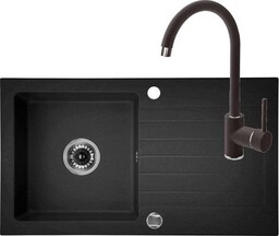 DEANTE Zlewozmywak jednokomorowy z ociekaczem Zorba ZQZV2113 44x76 + bateria Grafitowy