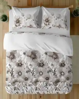 Detexpol Pościel bawełniana 220x200 biała beżowa szara kwiaty 48