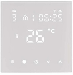- Programowanie do 6 zmian temperatury dziennie oraz funkcje frost protection i tryb urlopowy.