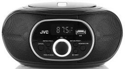 JVC RD E221B Czarny radioodtwarzacz CD z funkcją odtwarzania płyt, wejściem USB, głośnikami 2.1, pilotem, 20W, wbudowanym tunerem FM