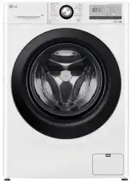Model oferuje 14 programów, w tym bawełna, pranie mieszane, syntetyki, delikatne, Eco 40–60, parowe odświeżanie, szybki program 14 minut oraz tryb prania dla alergików. Urządzenie umożliwia także pobieranie dodatkowych programów przez aplikację mobilną LG ThinQ. Panel sterowania z dużym wyświetlaczem LED oraz pokrętłem centralnym ułatwia wybór i konfigurację cyklu prania. Pralka obsługuje również funkcję opóźnionego startu oraz opcję dołożenia prania w trakcie cyklu.