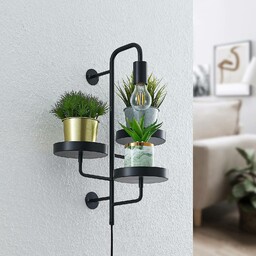 Lindby Hanjo (numer katalogowy 9627195) to lampa ścienna o minimalistycznym, industrialnym charakterze, która łączy funkcję oświetleniową z elementem dekoracyjnym. Jej konstrukcja składa się z metalowej ramy w kolorze matowej czerni, zakończonej otwartą oprawą E27 skierowaną w dół. Z ramy wyrastają trzy poziome półki w kształcie dysków, które mogą służyć do ekspozycji małych roślin doniczkowych, świec czy innych dekoracji. Wymiary lampy to 50 cm wysokości, 39,5 cm szerokości i 28,5 cm głębokości, co sprawia, że jest odpowiednia do montażu na wąskich ścianach, np. w korytarzach czy nad stolikami nocnymi.