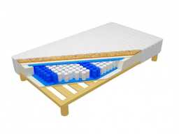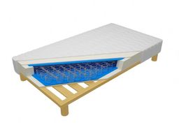 Materac Bruksela na stelażu Jednostronny materac o wysokości ok. 20 cm posiada wbudowany stelaż mający kluczowe znaczenie w konstrukcji łóżka, odpowiadający za prawidłowe wsparcie i wentylację. Dostęp...