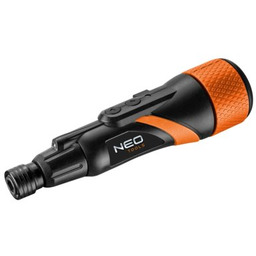 Wkrętak akumulatorowy NEO 04-200 zasilany jest akumulatorem litowo-jonowym o napięciu 3,6 V. Pojemność akumulatora w wersjach na rynku to 0,8 Ah lub 1,3 Ah, zależnie od zestawu. Maksymalny moment obrotowy wynosi 2,1 Nm. Prędkość obrotowa bez obciążenia to 280 obr./min. Uchwyt narzędziowy sześciokątny ¼” (6,35 mm). Silnik jest typu szczotkowego. Masa urządzenia to około 0,16-0,17 kg bez akumulatora / akcesoriów. Ładowanie odbywa się przez port micro-USB. W zestawie znajdują się końcówki wkrętakowe: 36 krótkich i 7 długich, adapter oraz plastikowe pudełko. W niektórych wersjach zestawu dołączony jest uchwyt magnetyczny.