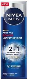 MEN - ANTI-AGE - Power Moisturizer marki Nivea. Krem do twarzy. Przeznaczony do codziennej rannej pielęgnacji męskiej skóry każdego rodzaju, również wrażliwej. Skutecznie łączy w sobie pielęgnacyjne w...
