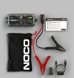 , NOCO GB40 to przenośny booster z akumulatorem litowo-jonowym, dostarczający 1000 A do szybkiego rozruchu rozładowanego akumulatora. Obsługuje akumulatory AGM, k... rozwiń