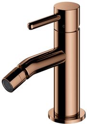 Bateria bidetowa 14,5 cm Bateria bidetowa, sztorcowa. Zasięg wylewki: 10,6 cm Wysokość wypływu wody: 7 cm Całkowita wysokość baterii: 14,5 cm Wykończenie: miedź Podłączenie: 3/8" Rodzaj głowicy: Niska...