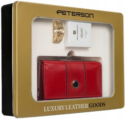 Peterson zestaw prezentowy PTN ZD32 czerwony skórzany portfel i pasek, elegancki, męski
