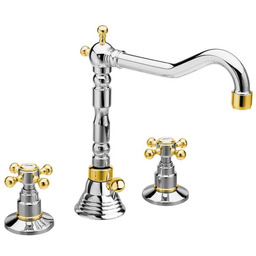 Sapho ANTEA bateria umywalkowa trzyelementowa z wylewką retro chrom/złoto 3222 Marka: SAPHO Seria: ANTEA Wysokość: 175 mm Głębokość: 195 mm Kolor: Chrom/Złoto Materiał: Mosiądz Kształt: Retro Instalac...