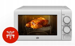 , Kuchenka mikrofalowa UD MG20L WA to niezawodne urządzenie o mocy 700 W, które oferuje 6 stopni mocy i funkcje takie jak rozmrażanie oraz grill. Pojemność 20 lit... rozwiń